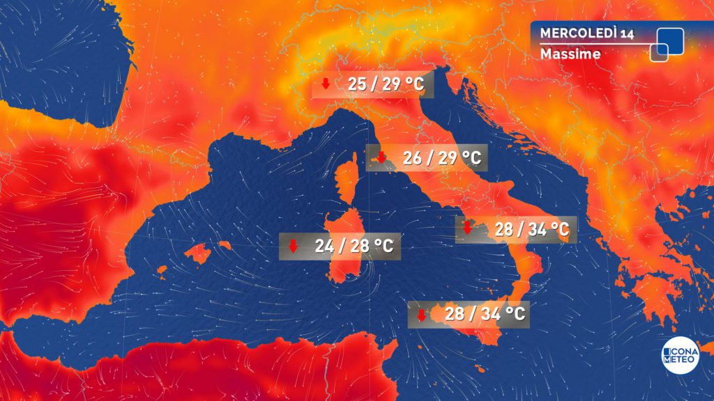 Temperature: in lieve calo al Sud e sulla Sicilia; in rialzo la massime in Sardegna e sulla Toscana.