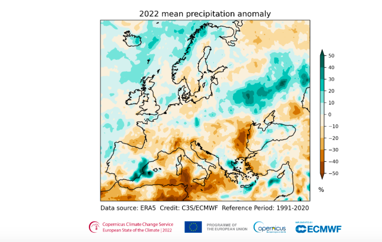 La siccità è stato uno degli eventi più significativi che hanno interessato l’Europa nel 2022. Durante l’inverno 2021-2022, gran parte del Continente ha registrato meno giorni di neve rispetto alla media, con molte aree che hanno visto fino a 30 giorni in meno. In primavera, le precipitazioni sono state inferiori alla media in gran parte del continente, con maggio che ha visto le precipitazioni più basse mai registrate per il mese.