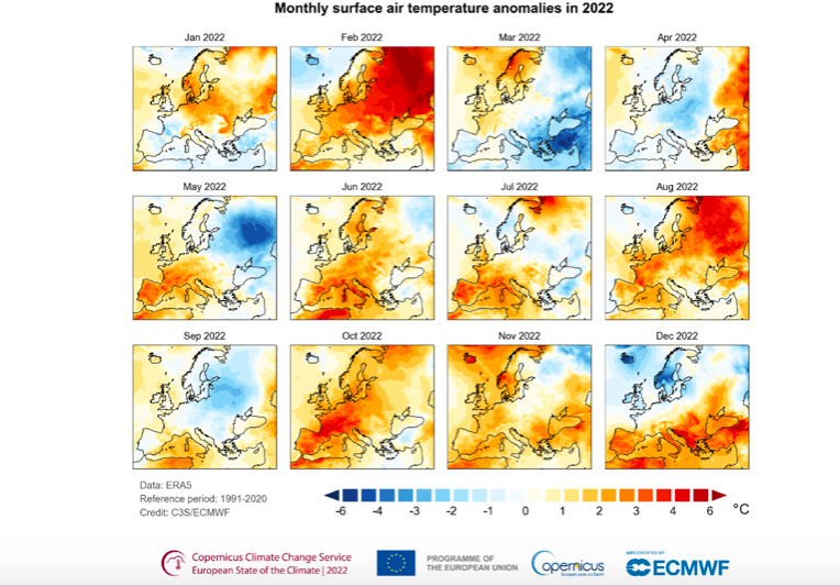 Lo rivela il nuovo rapporto sullo stato del clima europeo 2022 di Copernicus.