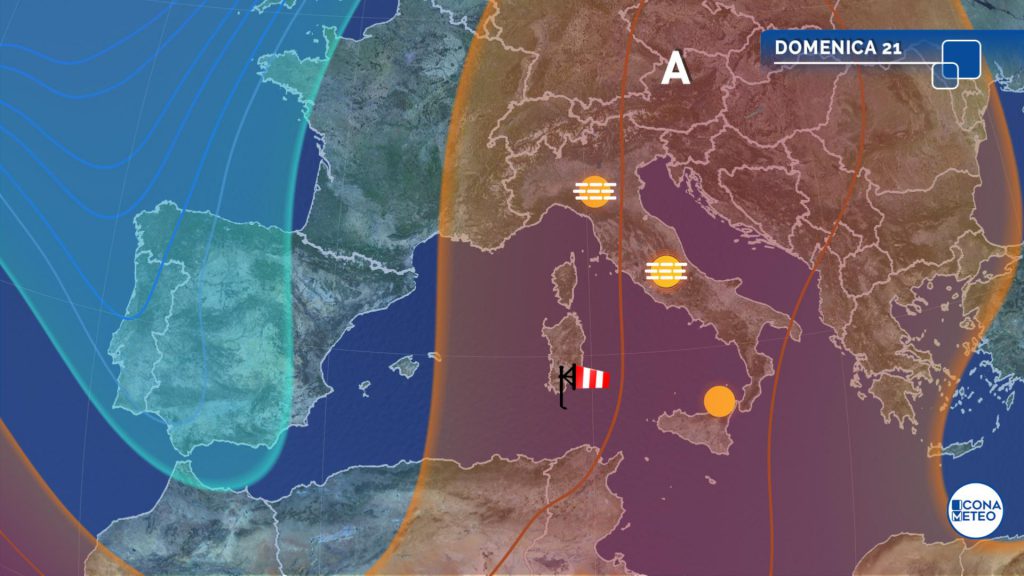 A metà settimana l’azione dell’area di alta pressione sarà ancora più evidente e garantirà, infatti, una situazione caratterizzata da cieli ancor più sereni con la possibilità di nebbie notturne ma che risulteranno molto meno diffuse e in diradamento già dalle prime ore del giorno.