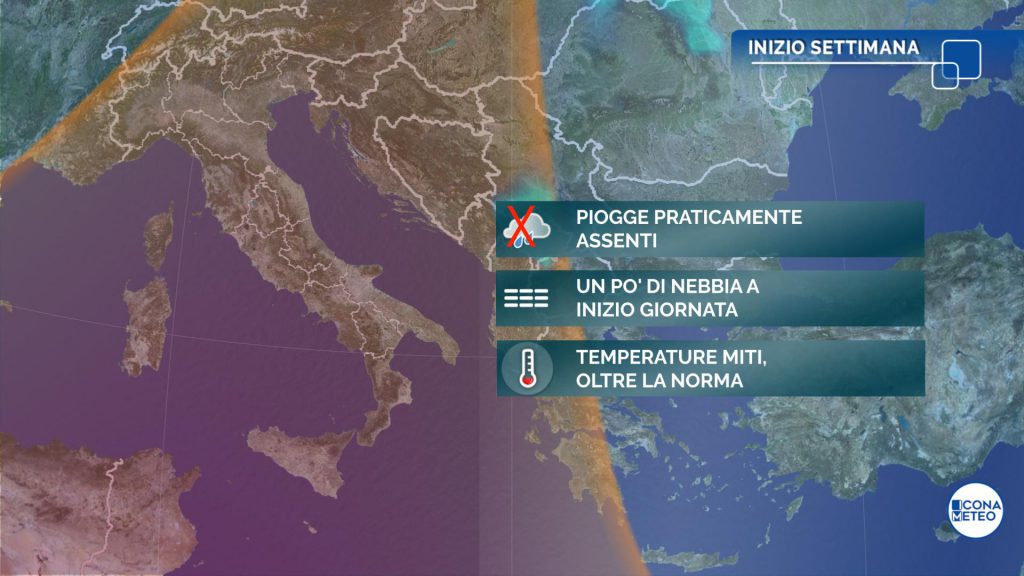 Nella giornata di martedì l’alta pressione inizierà a cedere ad iniziare dalle regioni centro-settentrionali. Un flusso occidentale di aria umida mite porterà annuvolamenti e manterrà le temperature leggermente al di sopra della norma.