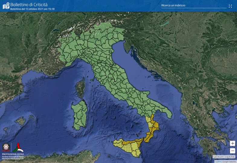 La Protezione civile ha diramato l’allerta arancione su alcuni settori di Sicilia e Calabria dove saranno possibili forti temporali con rischio idraulico e idro-geologico.