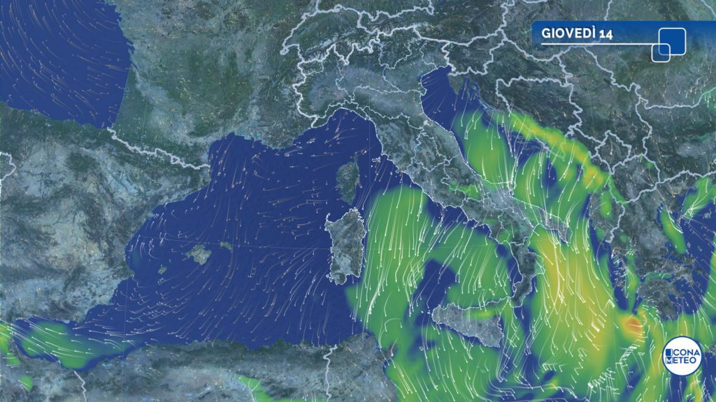 Soffieranno venti intensi anche sul medio Adriatico, Tirreno centro-meridionale e sui Canali delle Isole con raffiche fino a 80km/h. Attenzione al rischio di mareggiate sulle coste esposte, in particolare lungo l’Adriatico e sulle coste ioniche.