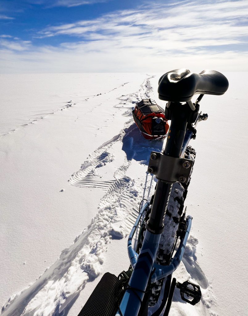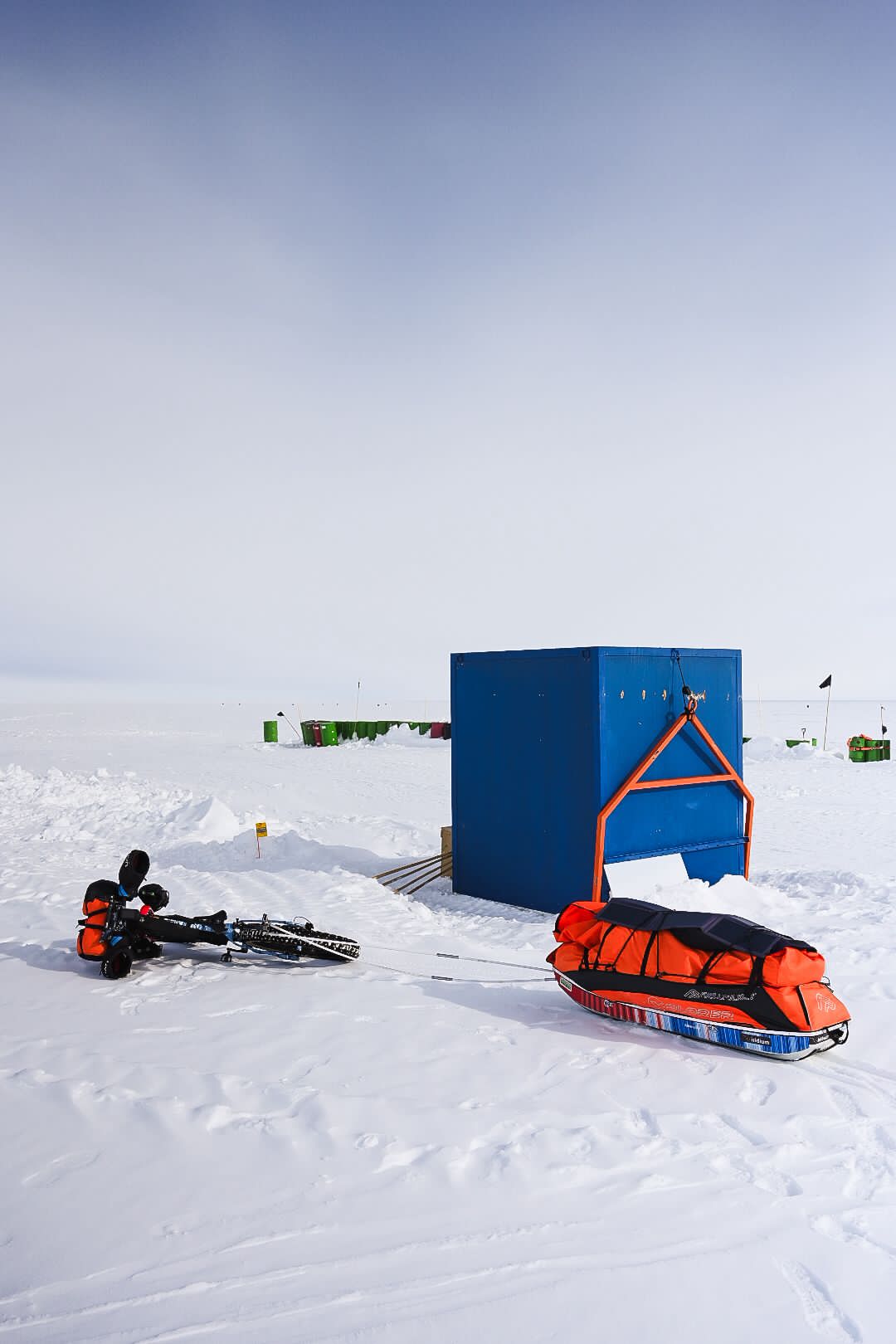 La preparazione è di due tipi: tradizionale e organizzativa. Per la prima mi sono concentrato allenandomi in bicicletta e senza bici in palestra per rinforzare tutte quante le parti del corpo perché differentemente dalle solite avventure ciclistiche passate, sapevo di non dovere solo pedalare ma anche trascinare una slitta e occuparmi di me in tutto e per tutto da solo. Mi sono preparato a 360 gradi ed è stata questa la parte nuova rispetto a un’avventura in bicicletta tradizionale. Per tutto quello che invece riguarda la la logistica, le persone non hanno la percezione di quanto sia complicato e complesso organizzare un’avventura in Antartide: per andarci servono dei permessi speciali, tutti i dettagli devono essere studiati a fondo non soltanto rispetto alla parte bici ma anche dal punto di vista di come si vive e di che cosa bisogna portare.