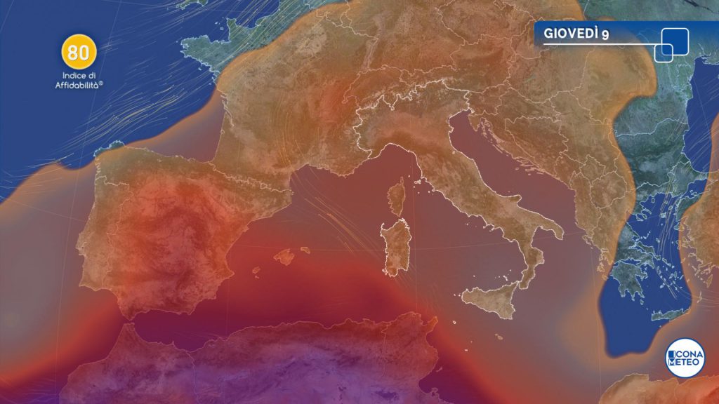 Temperature massime in ulteriore e lieve calo in Sicilia e nel sud della Calabria, senza variazioni di rilievo nel resto d’Italia; valori in generale compresi tra 25 e punte di 29-30 gradi.