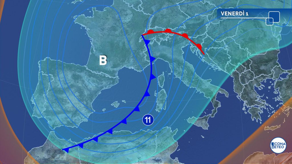 La quota neve sarà in rialzo al Nord ma con limite ancora basso, inizialmente fino ai 200-500 metri al Nordovest e nelle valli alpine più settentrionali. Fenomeni in attenuazione tra sera e notte.