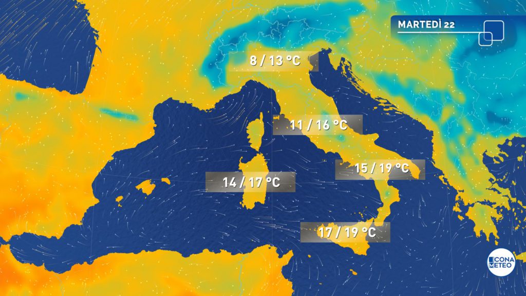 Prosegue sull’Italia questa lunga fase segnata da temperature decisamente sopra le medie stagionali. Anche questa mattina all’alba si sono registrati valori minimi ovunque al di sopra della norma. Al Nord, in pianura, temperature anche di 7-8 gradi: si tratta di valori minimi che sarebbero più normali come massime del pomeriggio. L’aria tiepida al seguito dell’alta pressione in espansione dal Marocco verso l’Italia assicurerà condizioni di stabilità atmosferica e clima mite su molte aree del nostro Paese.
