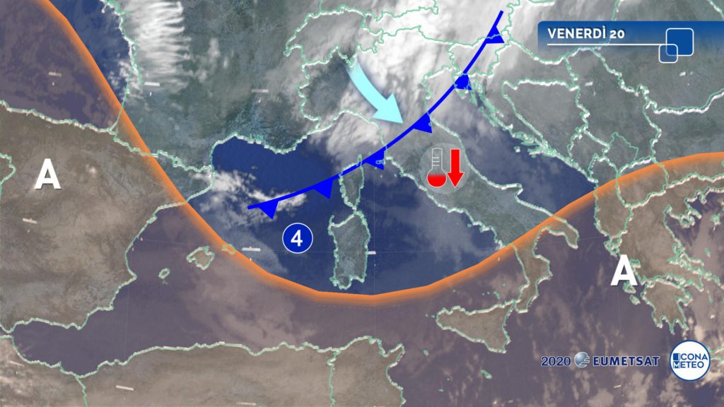 Le temperature massime subiranno un netto calo venerdì al Nord, al Centro, sulla Sardegna e parte del Sud. Sabato avremo un ulteriore calo dei valori massimi un po’ su tutto il Paese.