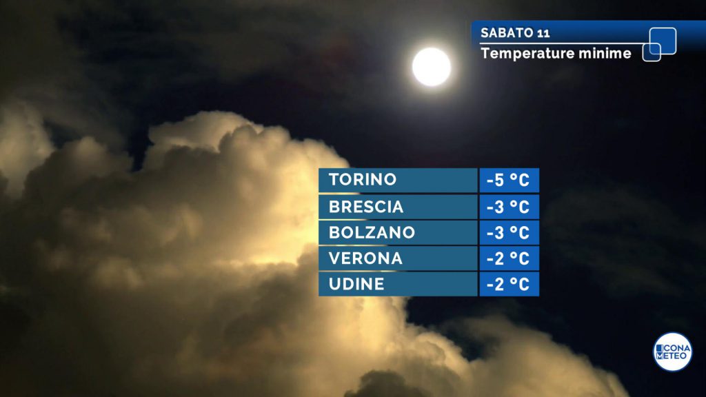 Determinante sarà l’afflusso di aria fredda e secca atteso nei giorni immediatamente precedenti, più efficace proprio sulle regioni settentrionali, dove grazie anche al temporaneo miglioramento atteso tra lunedì e martedì vi saranno le condizioni per la formazione di un buon cuscinetto di aria fredda in prossimità del suolo, con gelate anche intense al Nord-Ovest, di notte e al primo mattino.