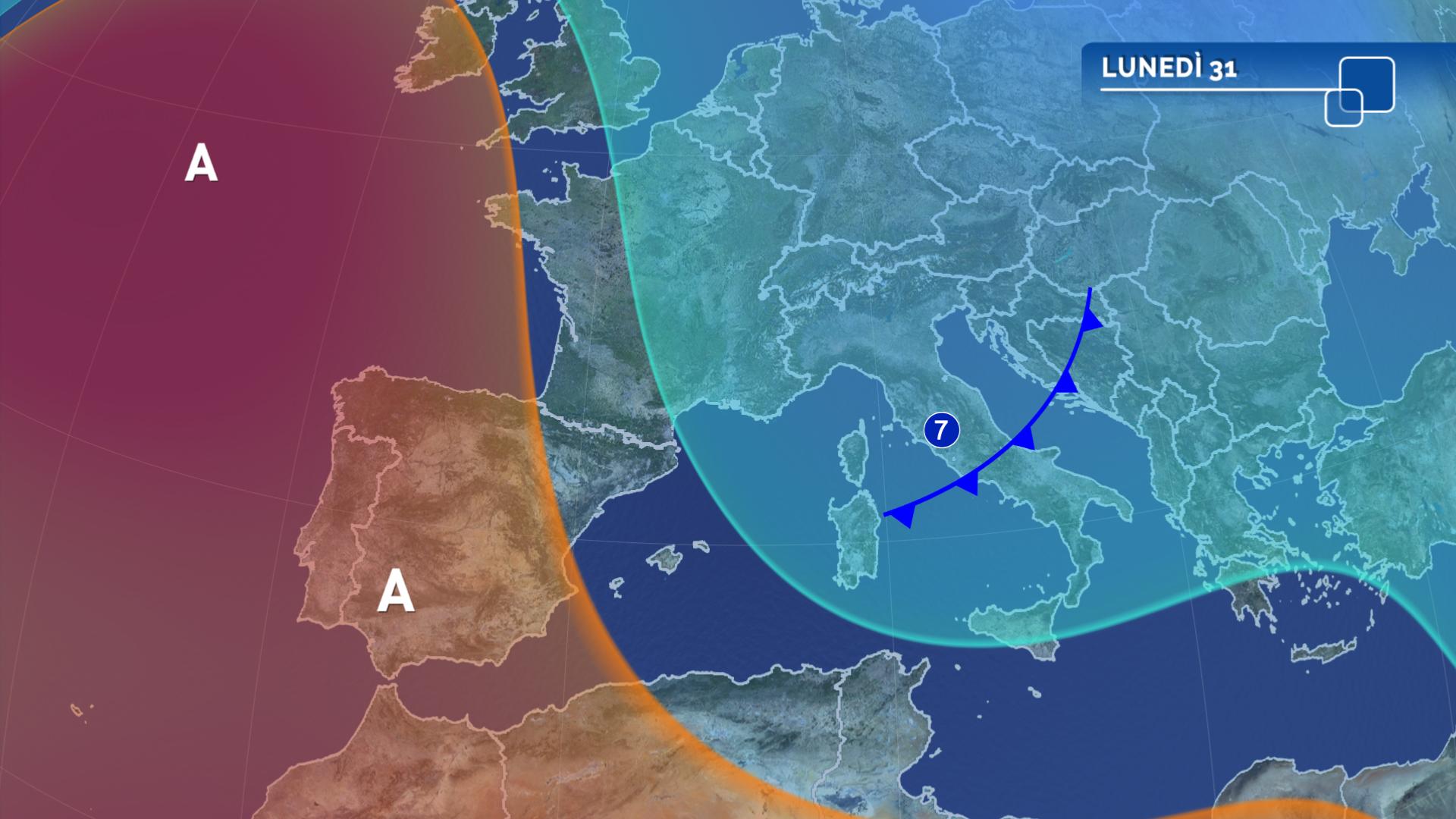 Già nella giornata di lunedì 31, però, una nuova perturbazione raggiungerà l’Italia. Le piogge ad essa associate interesseranno ancora una volta il Centro-Sud: le precipitazioni bagneranno le regioni tirreniche, Levante Ligure, Emilia Romagna e alto Adriatico, con nevicate sulle Alpi di confine. Il resto del Nord, invece, nonostante un aumento delle nubi, resterà all’asciutto. Lunedì le temperature tenderanno a calare specialmente al Centro-Nord.